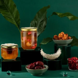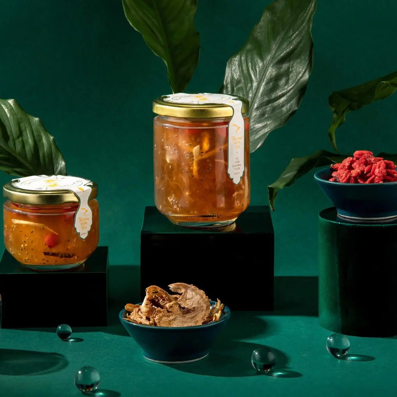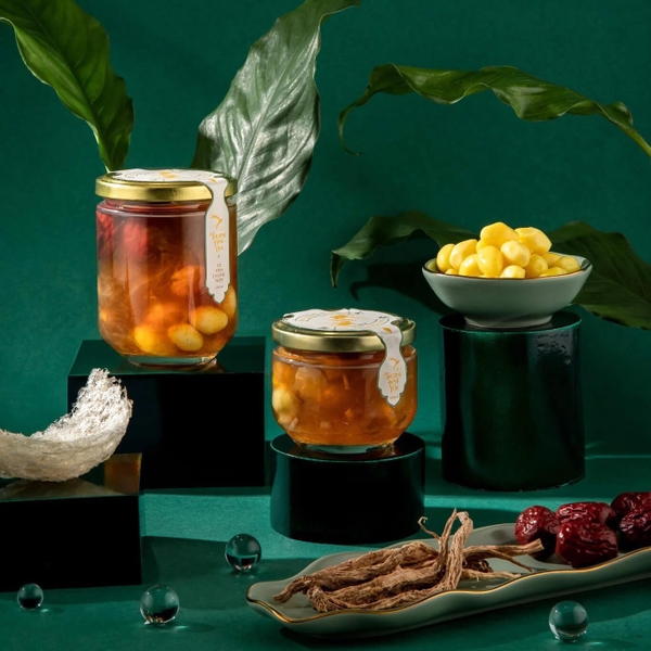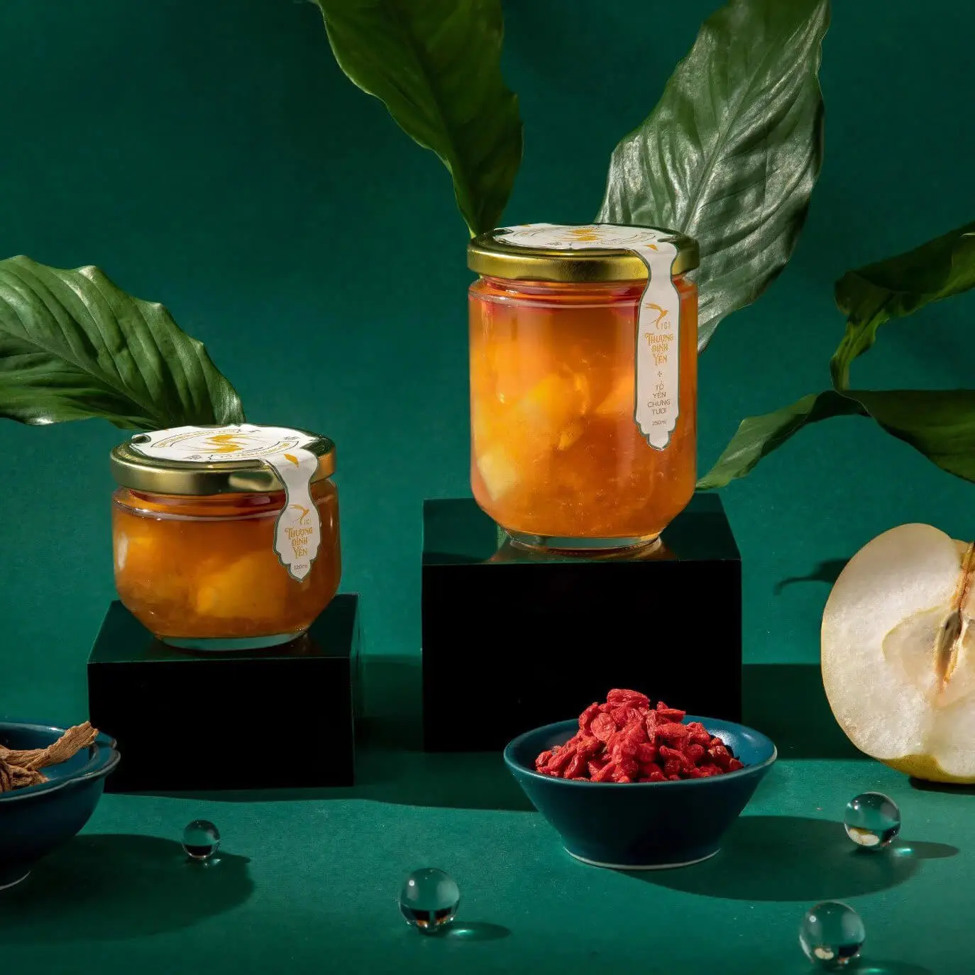 Sản phẩm được đựng bằng hũ thuỷ tinh tiệt trùng và hút chân không cùng túi giấy bên ngoài.